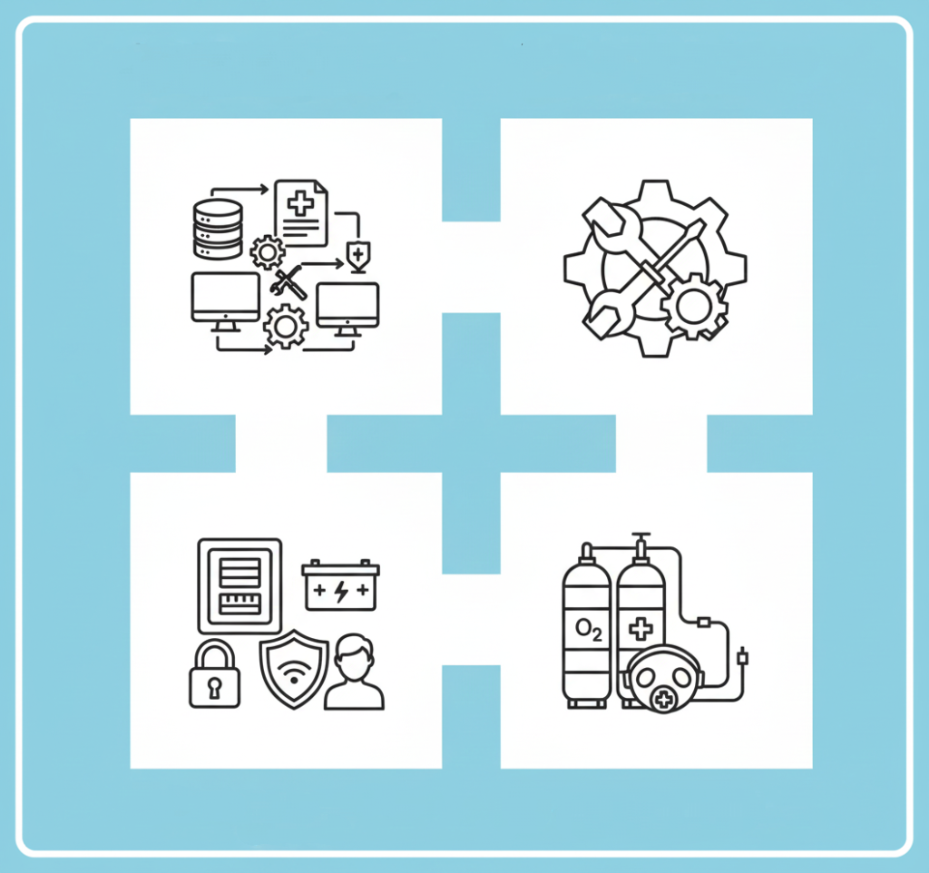 حلول تقنية وهندسية متكاملة، صُممت لرفع كفاءة المنشآت الطبية وضمان استدامة تشغيلها بأعلى معايير الجودة.